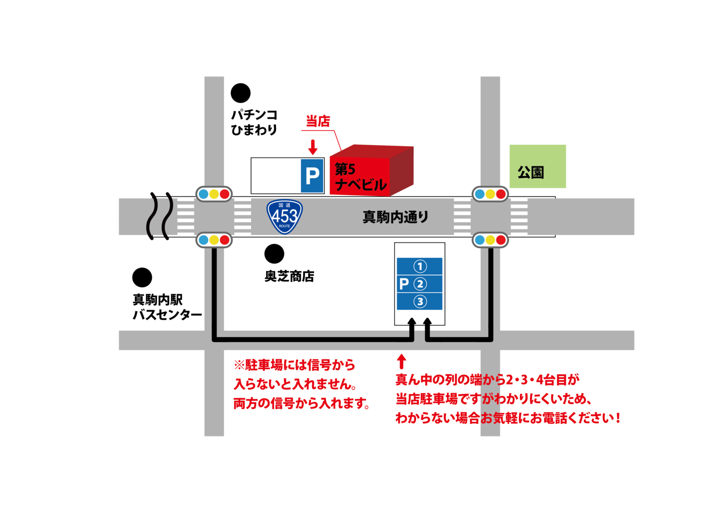 地下鉄南北線「真駒内駅」から徒歩約19分、中央バス「真駒内本町」停留所すぐの好アクセス。4台分の駐車場もあり、公共交通・お車のどちらでも便利にお越しいただけます。